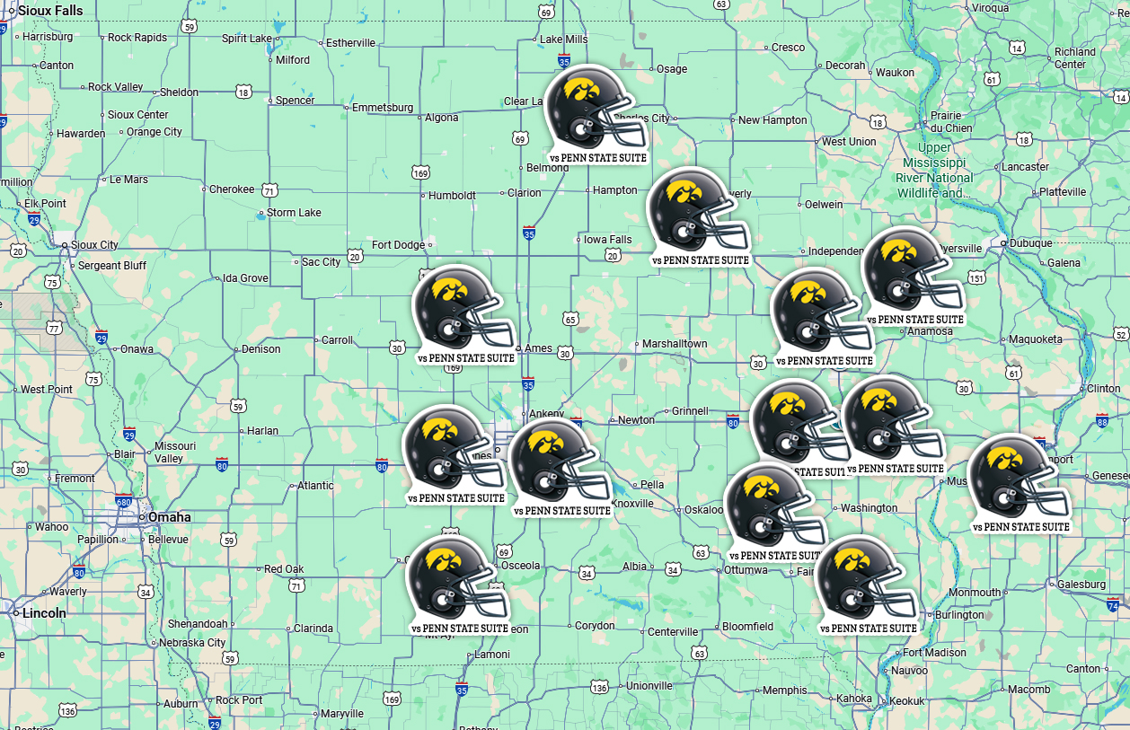 of where the Hawkeye BLACKOUT Penn State Ironmen Suite winners are located.