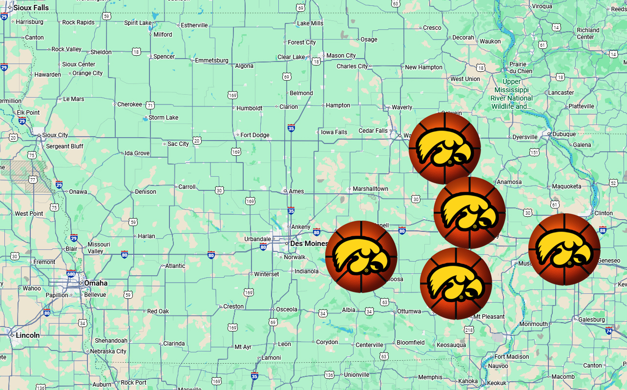 See a map of where the Hawkeye™ Hoops Pop-up Contest winners are located.
