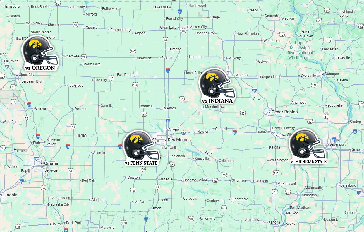 See a map of where the Hawkeye BLACKOUT Penn State Ironmen Suite winners are located.