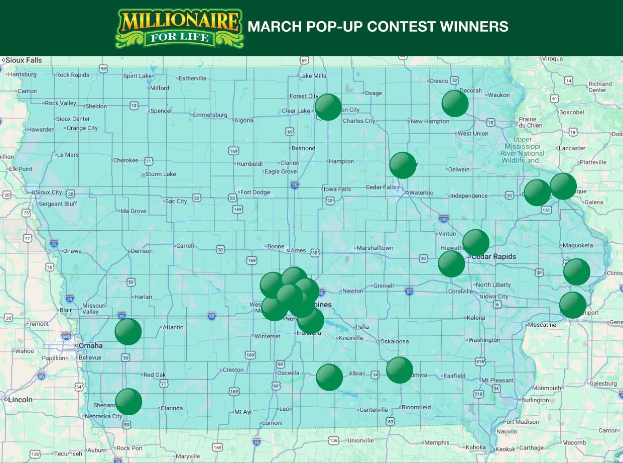 See a map of where the Millionaire for Life Pop-up Contest winners are located.